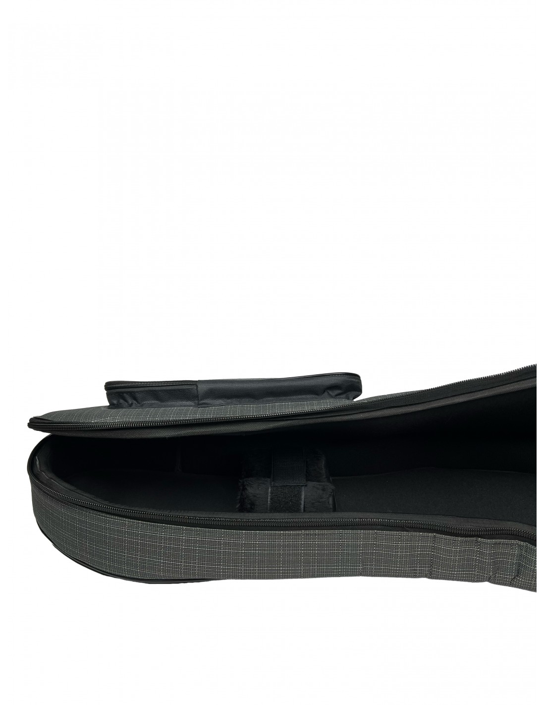 İç kısımda, enstrumanın sallanmasını engelleyecek ped destekli, sap sabitleyici yastık bulunmaktadır.