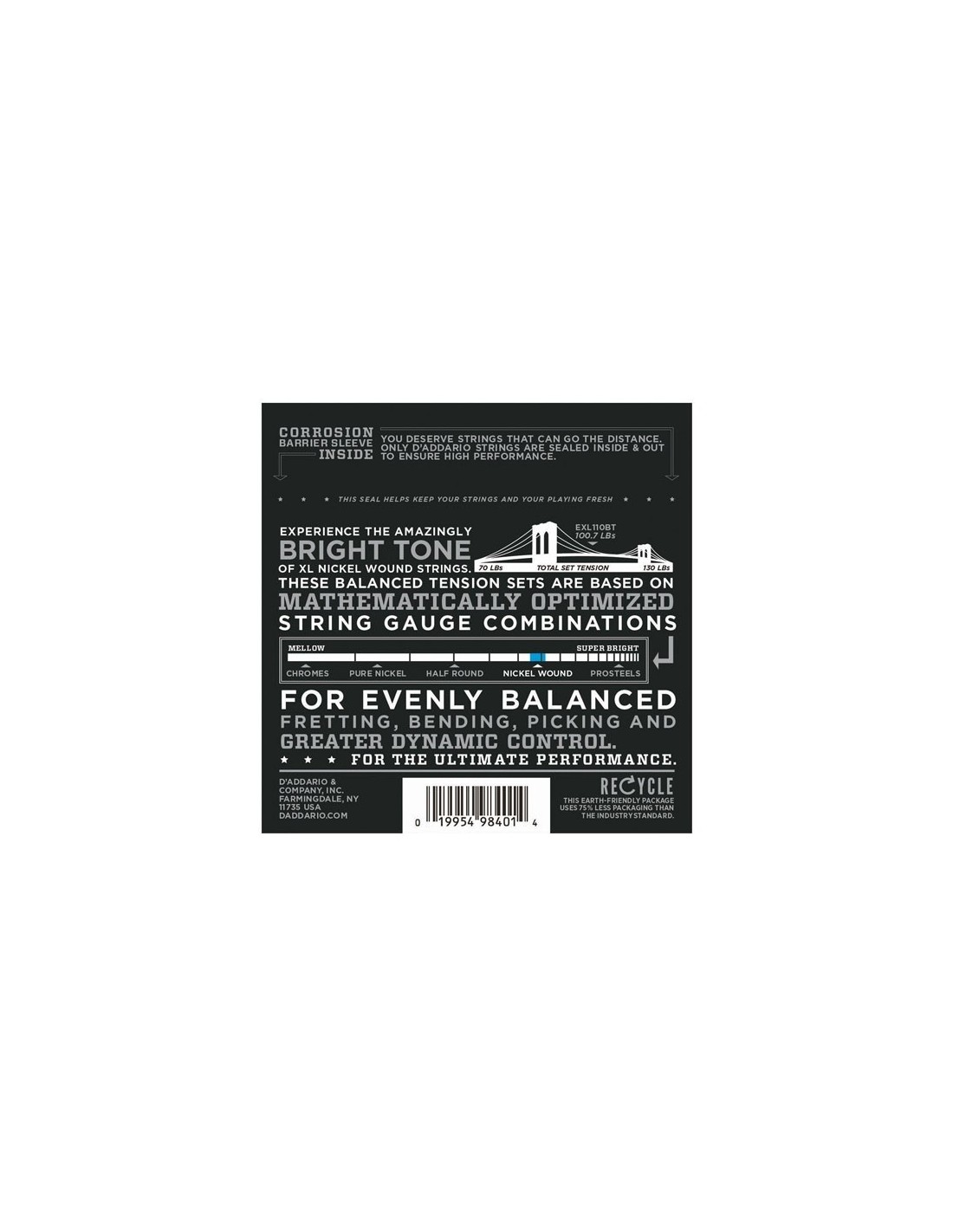 D'Addario'nun en popüler elektro gitar telleri olan XL Nikel Kaplama, altıgen şekilli, yüksek karbonlu çelik bir çekirdek üzerine, nikel kaplama çelikle hassas bir şekilde sarılmıştır. Sonuç, uzun ömürlü, belirgin parlak tonlu ve mükemmel tonlama özellikli teller, en geniş çeşitte gitar ve müzik stilleri için idealdir.