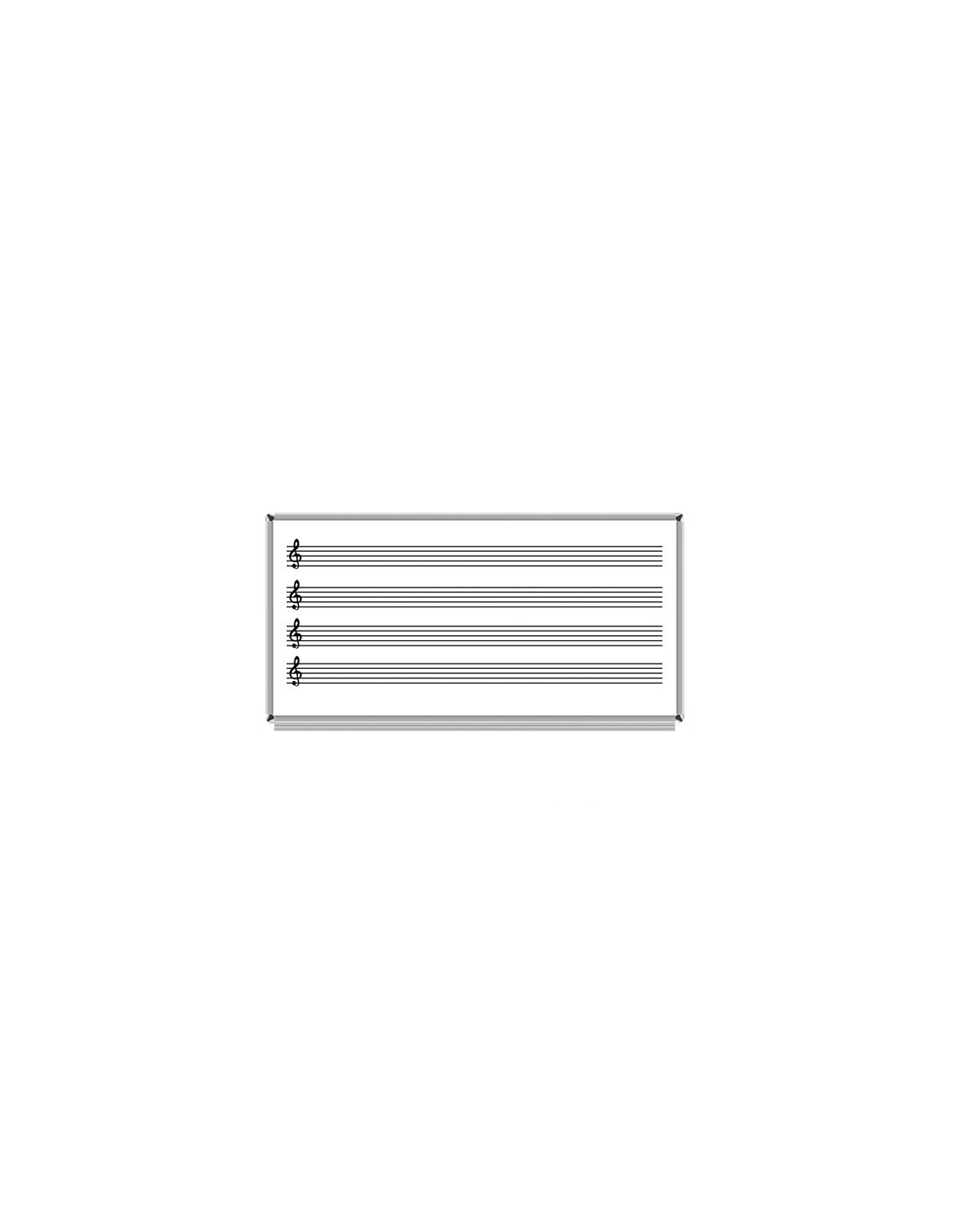 120x200 Laminat Müzik Çizgili Yazı Tahtası Laminat beyaz yazı tahtaları yazı tahtası kalemi (whiteboard marker) ile kullanılmaktadır. Müzik-nota çizgileri, özel bıçak ile çizilmiş olup, çizgilerin zaman içerisinde kaybolma ihtimali yoktur. Toplam 4 çerçeveden oluşan nota çizgileri, rahat ortamda notaları yazmanıza yardımcı olur. Sol anahtarı sticker (çıkartma) olarak yazı tahtasının yanında ayrıca gönderilir. Tahtanın çerçevesi alüminyum olup, sunta üzeri beyaz laminat yüzey ile preslenerek üretilmektedir. Yazı tahtasının alt tarafında boydan boya kalem ve silgi konulacak aparat bulunmaktadır. Emaye yazı tahtasından farklı olarak üzerine mıknatısla herhangi bir şey tutturulamaz. Dört köşesinde bulunan vida yerlerinden montajı yapılır. Yazılan yazıların yazı tahtası yüzeyinden silinmesi sırasında yüzeyde yazı izi kalmamaktadır. Yazı tahtasının kolay ve hiç iz bırakmadan silinebilmesi için edding, pilot ve muadili kalemlerin kullanılması önerilir. Laminat yüzey fabrikasyon hatalarına karşı 2 yıl garantilidir.